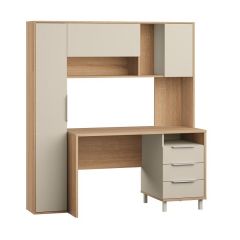 В набор также входит двустворчатый шкаф с отделением для одежды и двумя выдвижными ящиками в нижней части. Шкаф дополняет навесная полка с закрытыми отделениями, в которой удобно разместить учебные пособия или другие вещи.