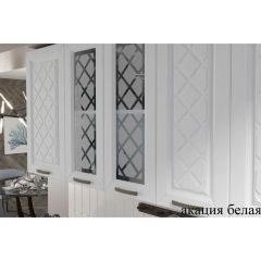 Фасады: МДФ рамочные, декор – «кремовый белый» с эффектом патины, рисунок