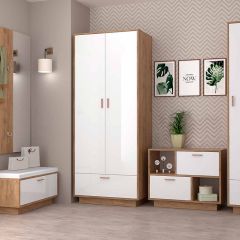 Модульная Прихожая Эго (дуб крафт золотой/белый глянец) цоколь