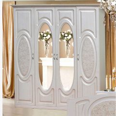 Прованс-2 Шкаф 4-х дверный с 2 зеркалами (Бежевый/Текстура белая платиной золото)